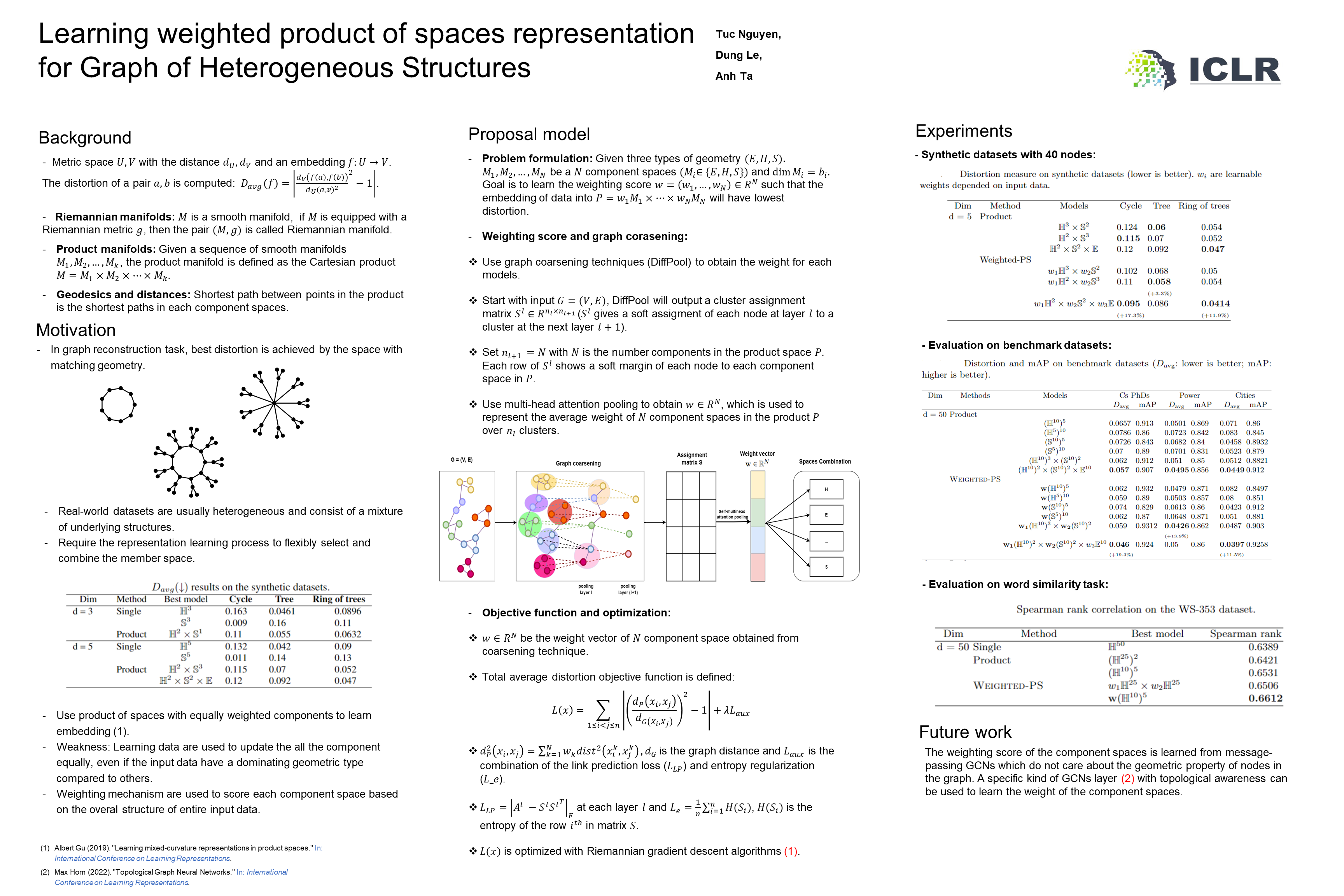 Learning Weighted Product Spaces Representations for Graphs of Heterogeneous Structures