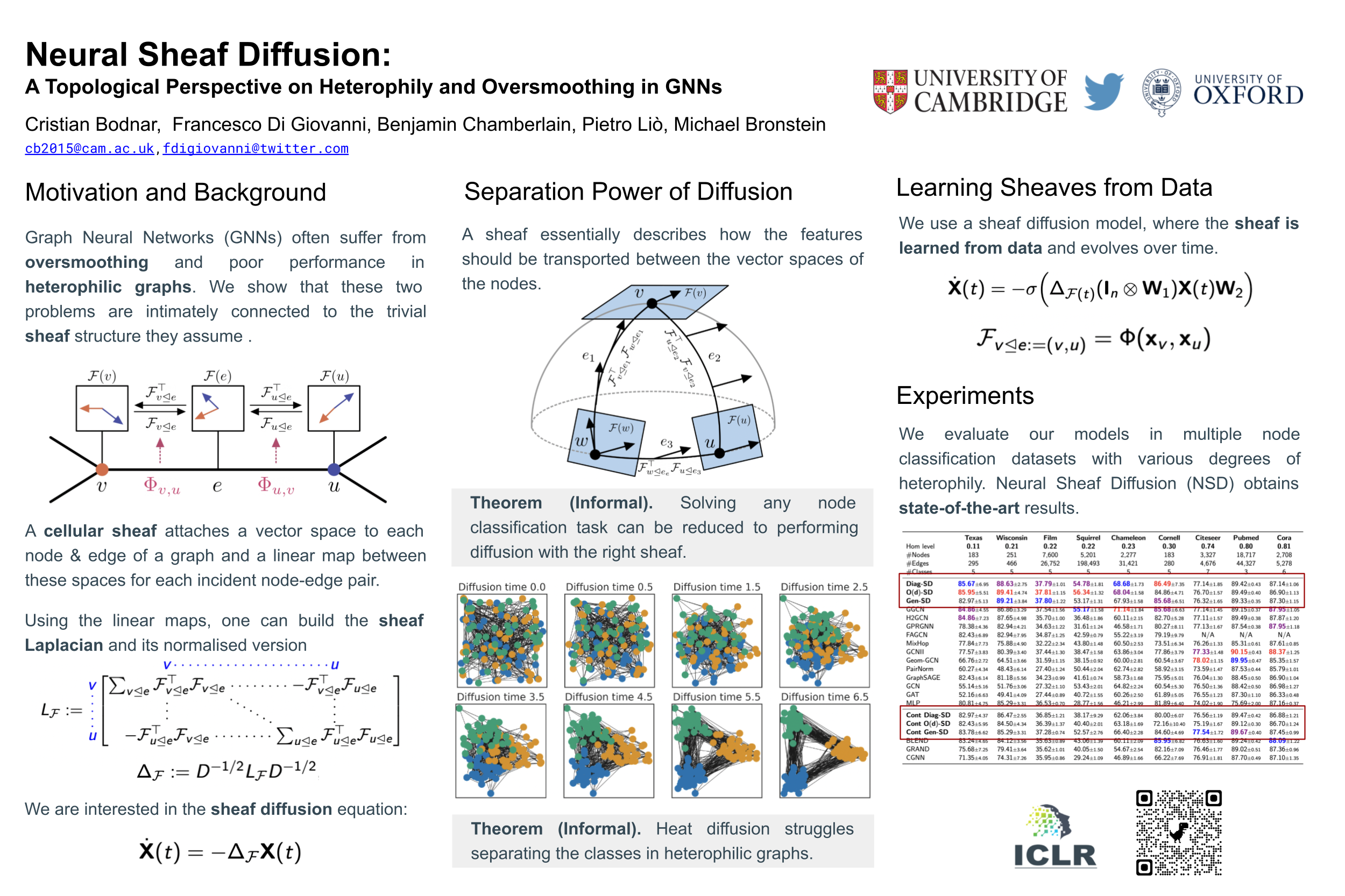 Neural Sheaf Diffusion: A Topological Perspective on Heterophily and Oversmoothing in GNNs (Spotlight presentation)
