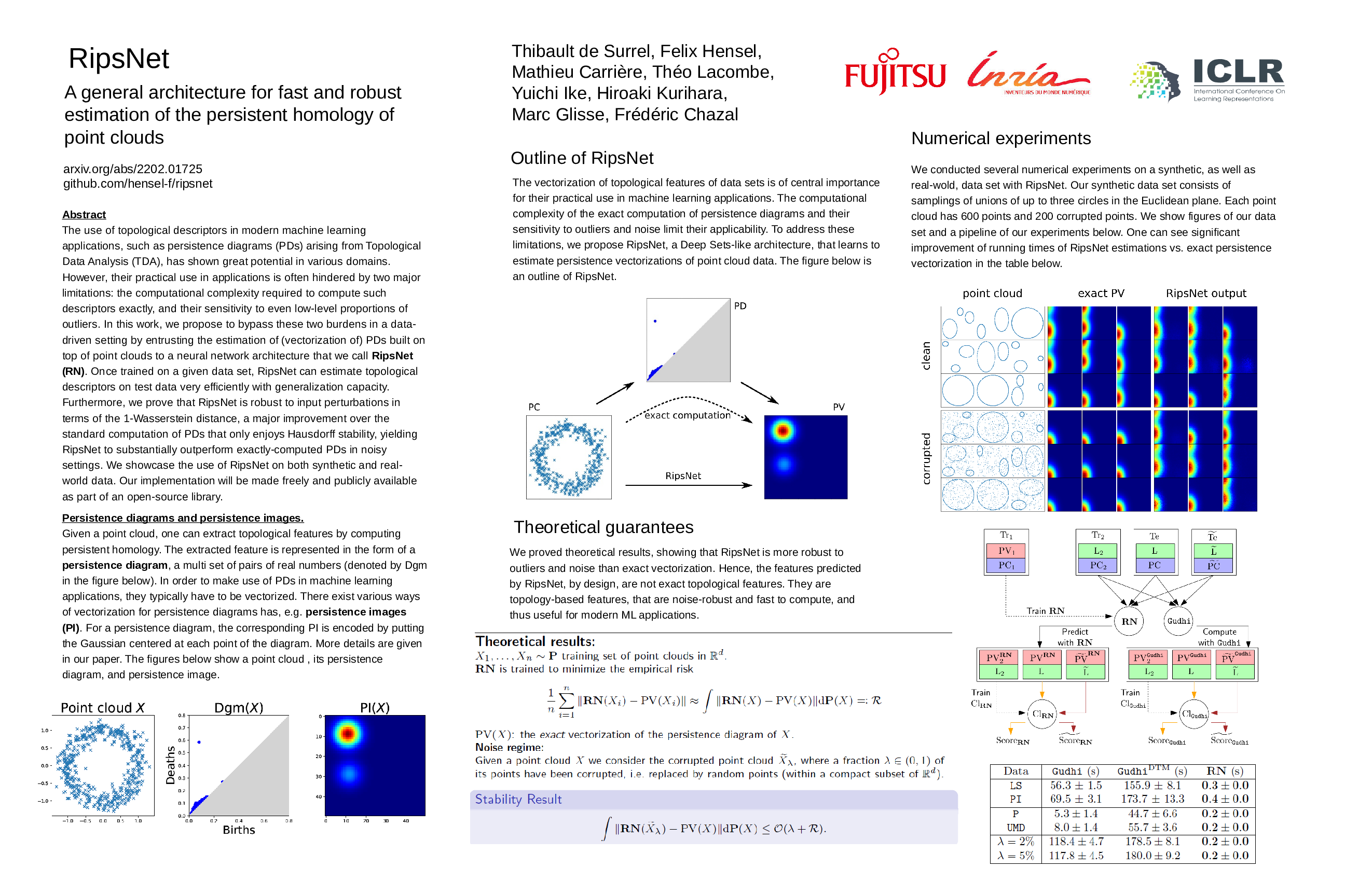 RipsNet: a general architecture for fast and robust estimation of the persistent homology of point clouds (Spotlight presentation)