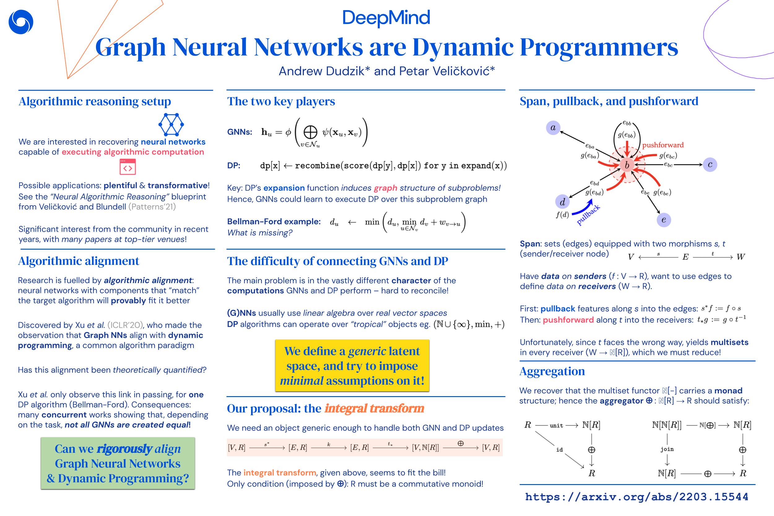 Recent advances in neural algorithmic reasoning with graph neural networks (GNNs) are propped up by the notion of algorithmic alignment. Broadly, a neural network will be better at learning to execute a reasoning task (in terms of sample complexity) if its individual components align well with the target algorithm. Specifically, GNNs are claimed to align with dynamic programming (DP), a general problem-solving strategy which expresses many polynomial-time algorithms. However, has this alignment truly been demonstrated and theoretically quantified? Here we show, using methods from category theory and abstract algebra, that there exists an intricate connection between GNNs and DP, going well beyond the initial observations over individual algorithms such as Bellman-Ford. Exposing this connection, we easily verify several prior findings in the literature, and hope it will serve as a foundation for building stronger algorithmically aligned GNNs.