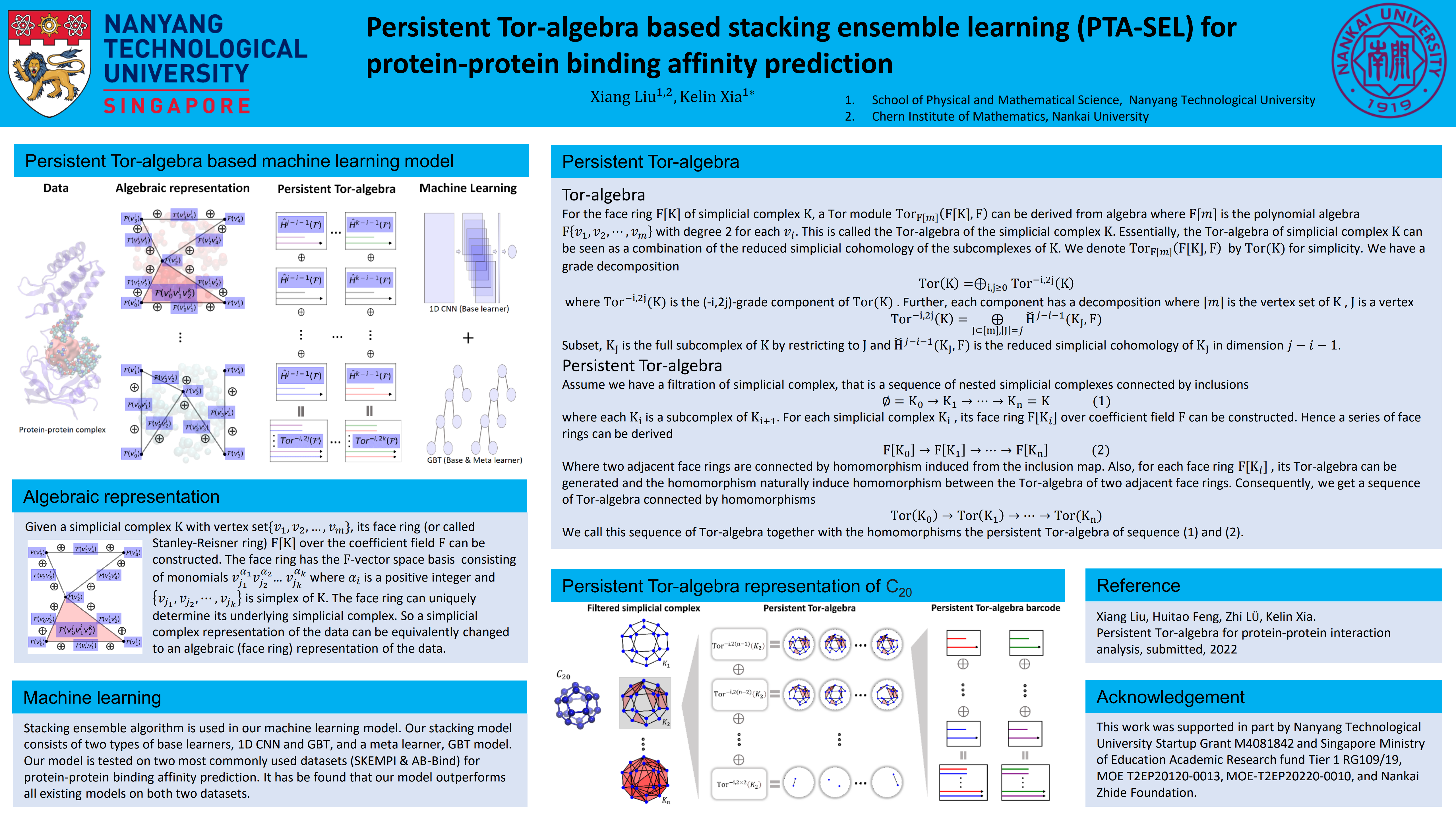 complex is used to characterize the PPI structure and its persistent Tor-algebra is computed to form the molecular descriptors. These descriptors then are fed into our stacking model to make the prediction. We systematically test our model on the two most commonly used datasets, i.e., SKEMPI and AB-Bind. It has been found that our model outperforms all the existing models as far as we know, which demonstrates the great power of our model.